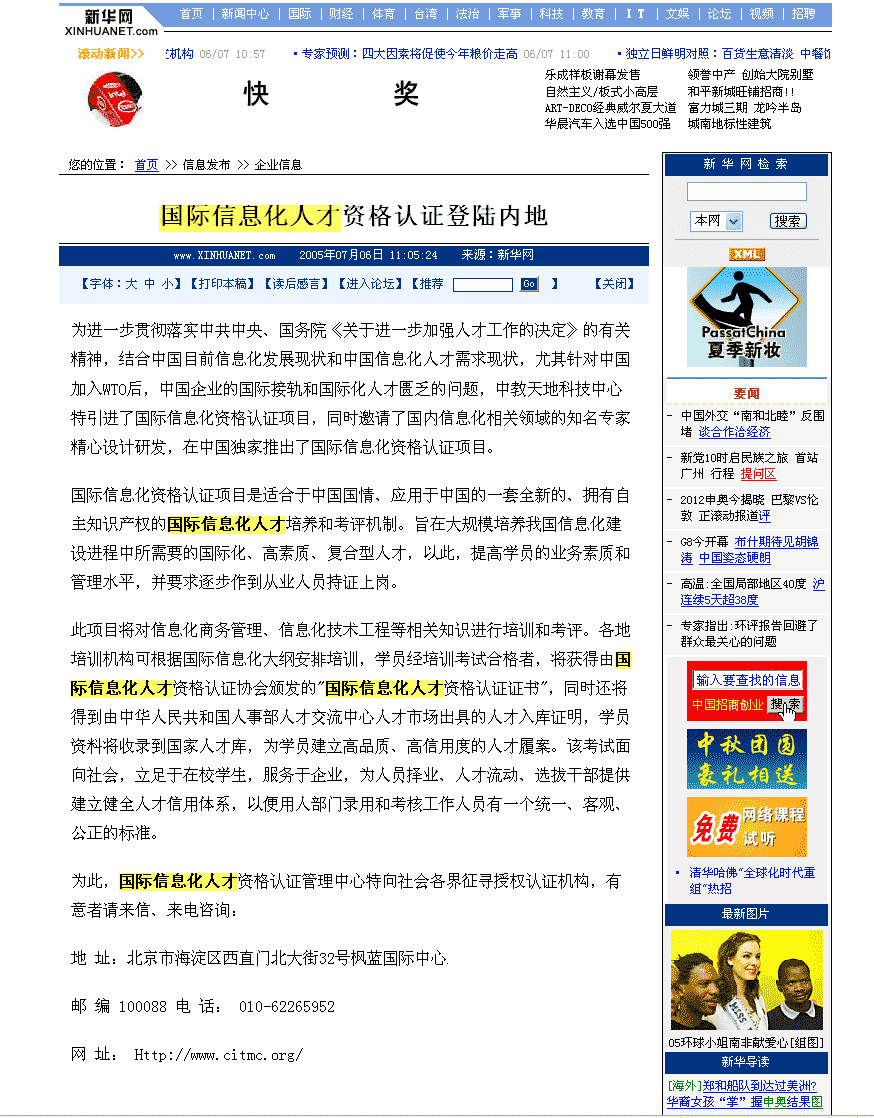 | 北京中教天地开展建立国际信息化培训相关专业的培训考试平台 |